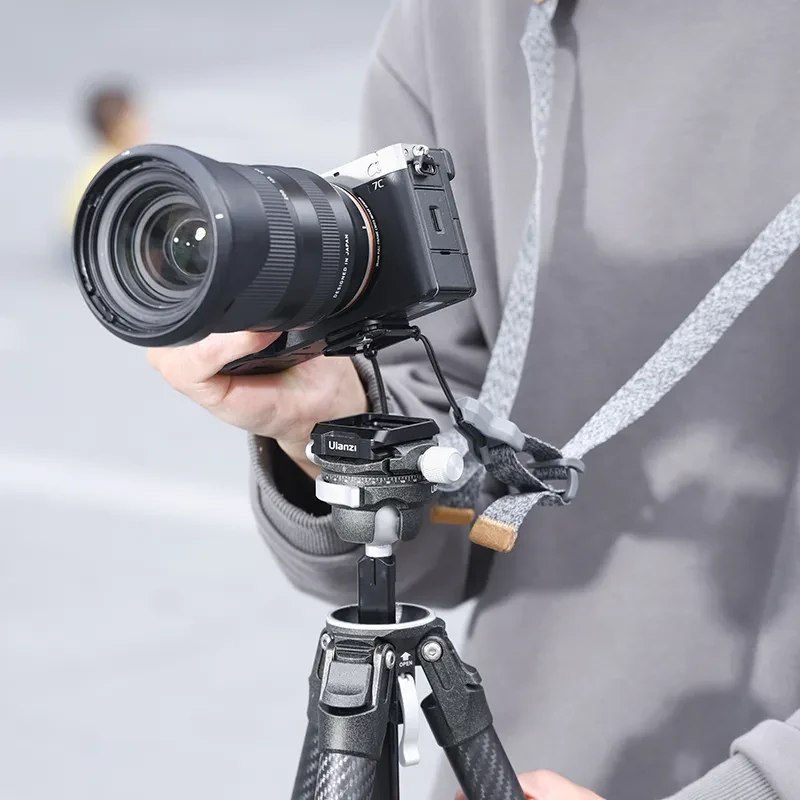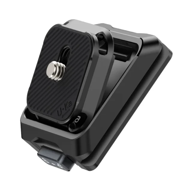 El sistema de fijación rápida Ulanzi Uka C007 se compone de una placa con ranuras de 85 × 60 mm y una base de 15 mm, ambas fabricadas mediante mecanizado CNC en aluminio 6061-T6 con un acabado negro anodizado duro (tipo III, espesor de 50 µm, resistencia al polvo y al agua IP66), capaz de soportar una carga dinámica de 20 kg (probada con una aceleración de 2 m/s²) y una carga estática de 25 kg mediante un mecanismo de inserción angular de 45°, que encaja en un pestillo de resorte de acero inoxidable (AISI 316, fuerza de retención de 50 N) en menos de 0,8 s. El perfil de la ranura cumple con los estándares Arca-Swiss (ancho de 39 mm, profundidad de 10 mm) y F38/Uka, lo que permite el desplazamiento en diferentes ángulos (0–90°) sin holgura (tolerancia <0,05 mm), asegurado mediante dos pasadores de acero inoxidable de 3 mm (resistencia a la tracción de 150 kg) y un botón M4 de 1/4 de vuelta (par de apriete de 2 Nm). Las roscas incluyen 11 orificios de 1/4"-20 UNC (equivalente a M6) y 4 de 3/8"-16 UNC, además de 4 pasadores de posicionamiento ARRI de 3 mm para una alineación precisa con accesorios de Manfrotto, DJI RS, SmallRig o Peak Design. Cuatro anillas de esquina integradas de 6 mm (reforzadas con nailon) admiten correas de seguridad (con una resistencia a la tracción de hasta 100 kg). El kit, con un peso de 78 g (placa de 45 g, base de 33 g), funciona a temperaturas de entre –20 °C y +80 °C y no requiere herramientas. Minimiza el desequilibrio del equipo (desplazamiento del centro de gravedad <2 mm) para su uso en cinematografía, gimbals o al grabar a mano alzada.