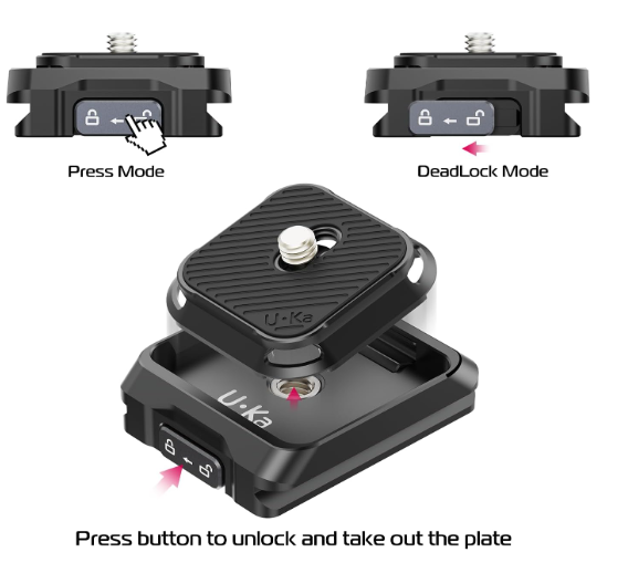 La placa de fijación rápida Ulanzi UKA02 es un adaptador de aluminio ultraligero, con un peso de 16 g, que permite cambiar al instante entre trípodes, estabilizadores, gimbals y jaulas mediante un tornillo estándar de 1/4"-20, compatible con la mayoría de cámaras fotográficas y de vídeo. Su diseño compacto, con unas dimensiones de 8,3 × 2,8 × 8,1…