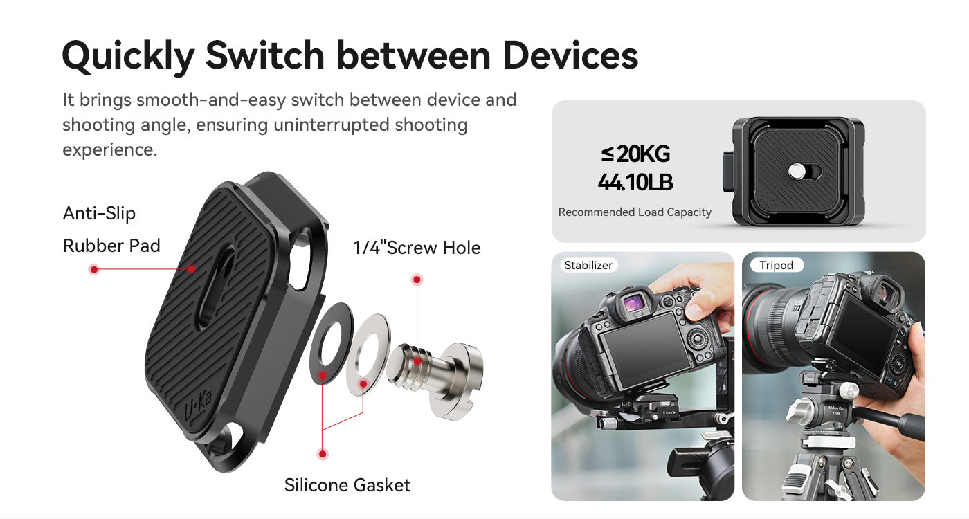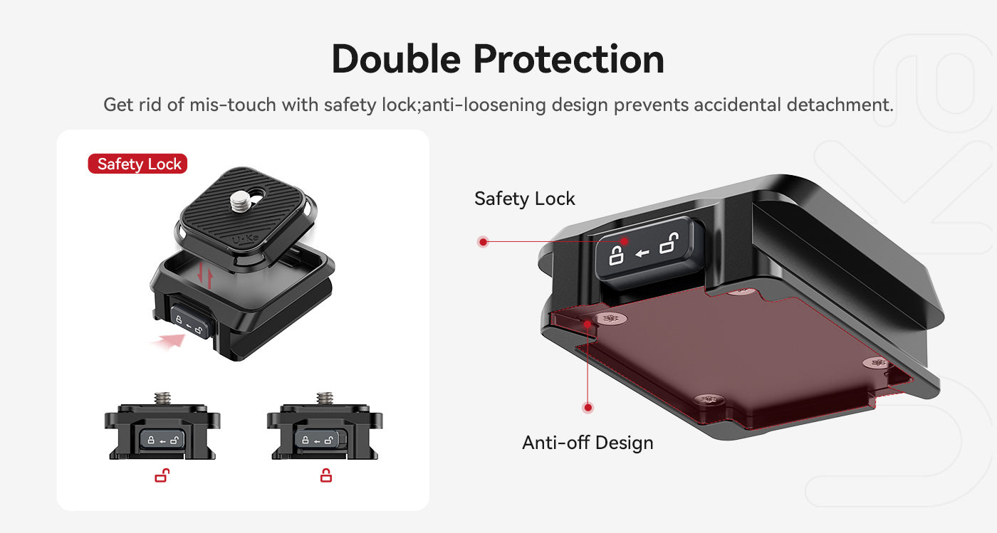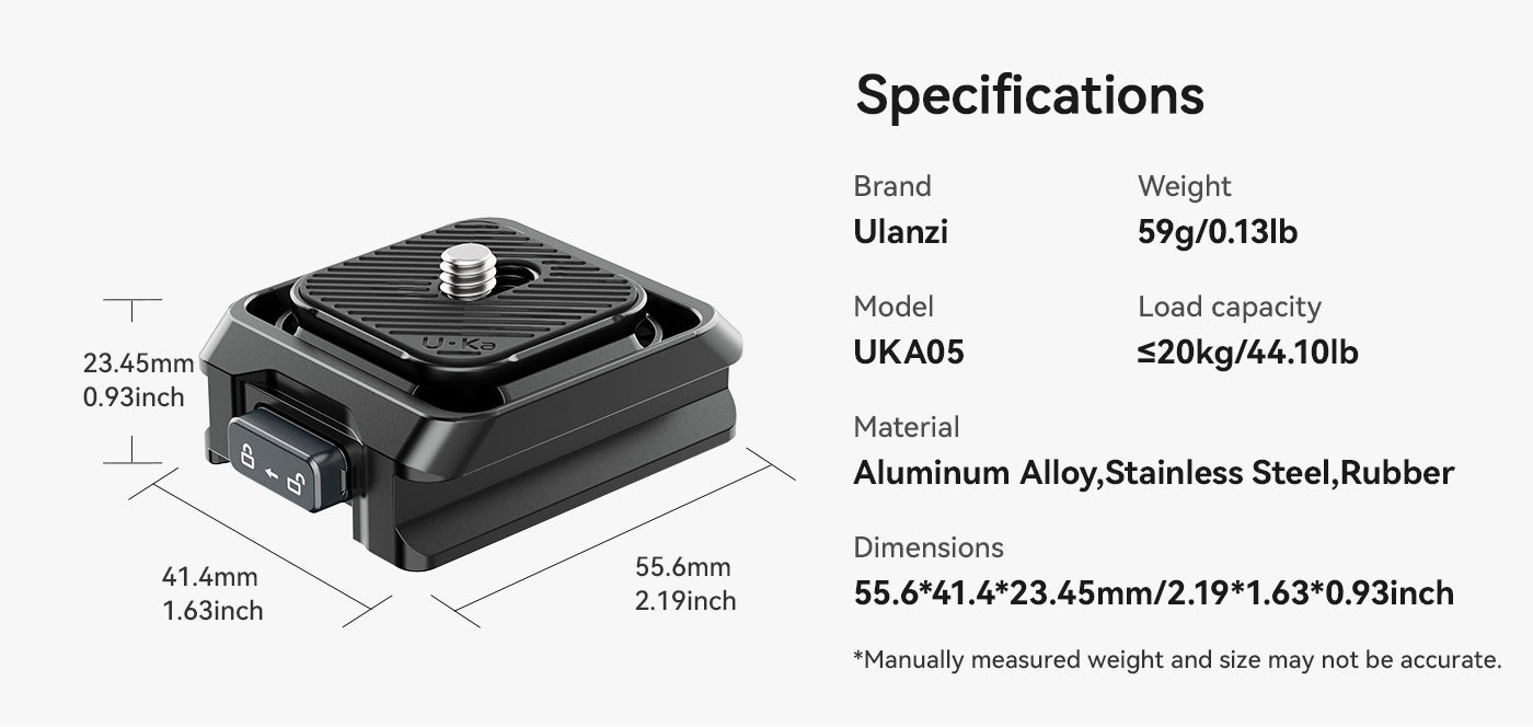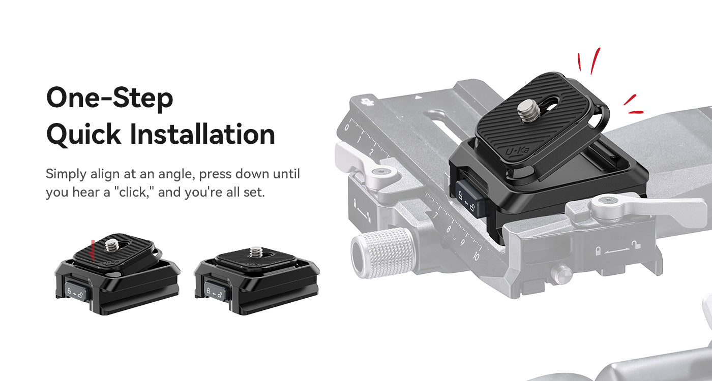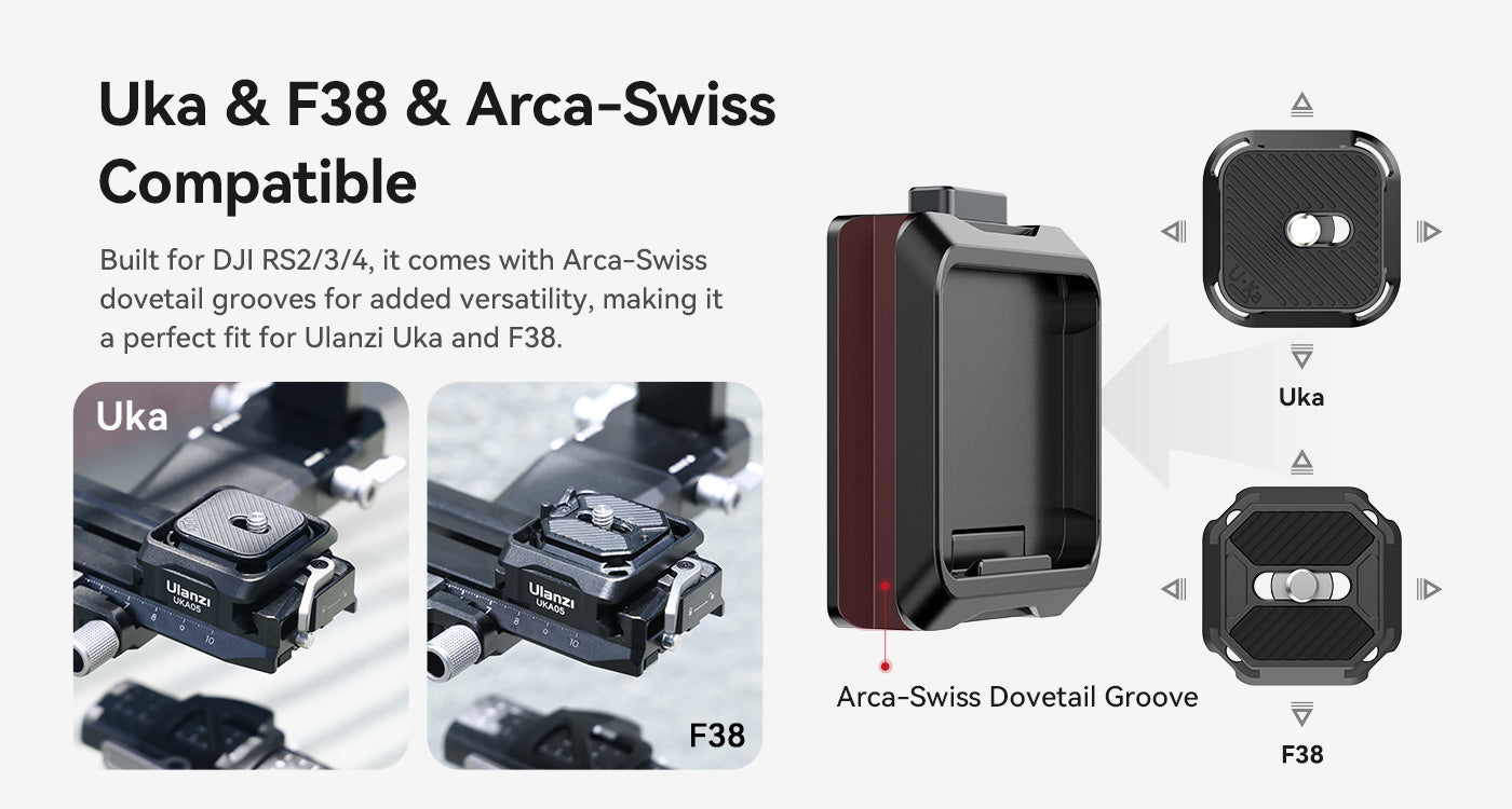 El kit Ulanzi UKA05 Uka Quick Release Kit para DJI RS2/3/4 es el complemento perfecto para una fijación rápida y segura de la cámara. Es compatible con Arca-Swiss, Uka y F38, ofrece una instalación en un solo paso, almohadillas de goma antideslizantes y un cierre de seguridad que evita que se suelte accidentalmente. Gracias a su estructura compacta y a su diseño preparado para fijar una correa, es ideal para creadores que viajan y es un accesorio indispensable para los usuarios de los estabilizadores DJI RS.