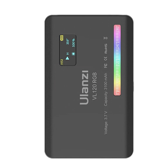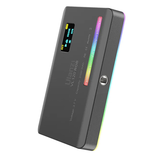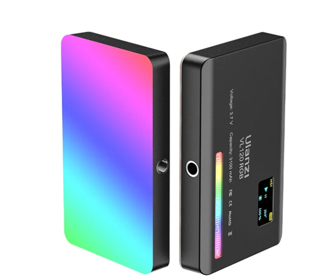 La luz de vídeo LED Ulanzi VL120 RGB es una solución de iluminación compacta pero potente con control total del color RGB, temperatura de color ajustable de 2500 a 9000 K, efectos integrados y una batería recargable de 3100 mAh, ideal para creadores que viajan.