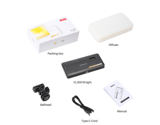 El brillo y la temperatura de color se pueden ajustar fácilmente mediante las ruedas giratorias integradas, mientras que la pantalla LCD integrada muestra el estado de la batería, el brillo y los ajustes de color. La luz se alimenta mediante una batería integrada con una capacidad de 5000 mAh y ofrece entre 2 y 15 horas de funcionamiento, dependiendo de la configuración. Se carga cómodamente a través de USB-C. Con un CRI de 90, refrigeración pasiva y opciones de fijación de 1/4"-20 y zapata fría, la VL-200 es ideal para grabaciones sobre la marcha, creación de contenido e iluminación mixta.