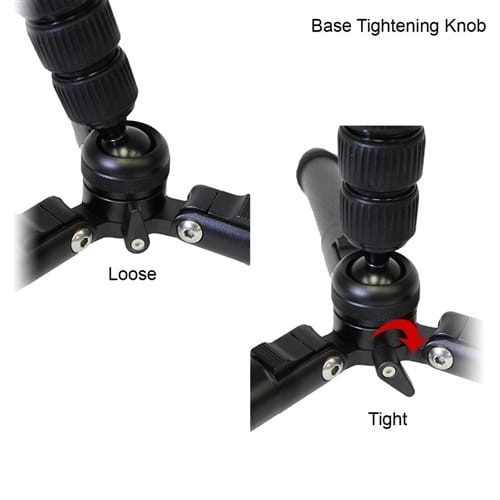 La base del trípode se pliega para el transporte y se bloquea en tres posiciones