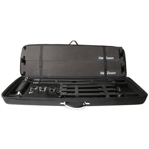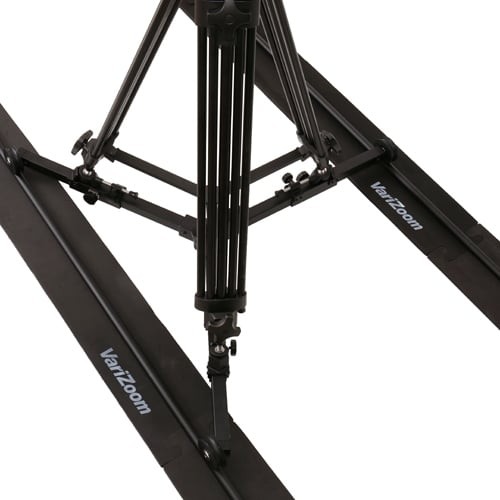 Las ruedas con superficie de goma, especialmente diseñadas, garantizan un funcionamiento totalmente silencioso, mientras que la base de espuma de alta densidad incluida permite colocar el riel prácticamente sobre cualquier superficie, incluyendo césped, grava, alfombra, baldosas y hormigón. Los soportes ajustables para fijar el trípode permiten trabajar cerca del suelo, sobre mesas de trabajo o a una altura máxima de 67 pulgadas utilizando el sistema de trípode VZ-TK75A incluido.