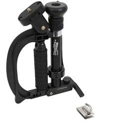 Como estabilizador, StealthyGo™ utiliza un ajuste telescópico y un diseño equilibrado para minimizar las vibraciones al grabar en movimiento. Su diseño compacto y ligero reduce la fatiga durante las grabaciones prolongadas y permite ángulos creativos versátiles, desde tomas desde una posición baja hasta vistas desde arriba.