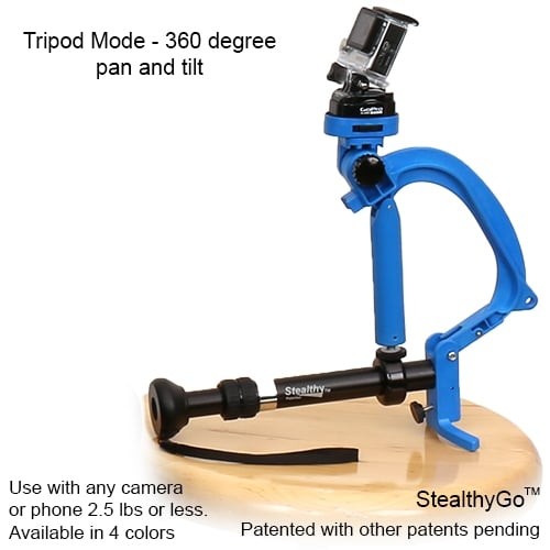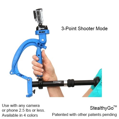 El StealthyGo™ está diseñado para cámaras GoPro®, dispositivos móviles y videocámaras pequeñas, y se adapta a tus necesidades de grabación en cuestión de segundos. Cambia del modo manual a la configuración de monopié, trípode, mesa o 3 puntos para obtener tomas estables en espacios reducidos o durante grabaciones manuales prolongadas. El clip para cinturón integrado permite un acceso rápido en «modo lateral», para que nunca te pierdas ninguna toma.