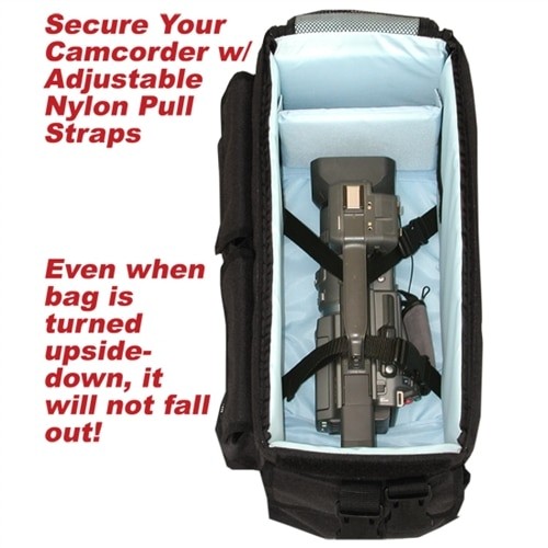 La bolsa para cámara VariZoom VZ-B20 ofrece una protección segura de nivel profesional para tus videocámaras y accesorios. La bolsa está fabricada en resistente poliéster 600D y nailon, cuenta con paredes acolchadas de 2,5 cm de grosor y una estructura reforzada para que tu equipo permanezca a salvo durante el transporte. Las correas de cierre rápido mantienen la cámara bien sujeta en el centro de la bolsa, mientras que las paredes interiores ajustables permiten separar fácilmente los objetivos, micrófonos u otros accesorios.