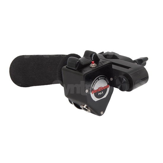 Permite el control remoto del zoom para objetivos Fujinon de 8 pines. Para su fijación, el controlador está equipado con una abrazadera de fijación rápida que, gracias a su versatilidad, permite montarlo en cualquier trípode. Para un ajuste ergonómico, el mango del controlador cuenta con una articulación y está recubierto de espuma blanda. El diseño del controlador permite su fijación tanto en el lado izquierdo como en el derecho. El Varizoom VZ-PG-F está equipado con un sistema de zoom dual variable. Permite ajustar la velocidad máxima de zoom mediante un potenciómetro y controlar el zoom con un interruptor basculante.