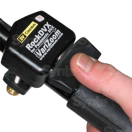 La cámara RockDVX utiliza un interruptor basculante sensible a la presión, situado de lado a lado, de forma similar a los controles de zoom de las transmisiones. Este botón basculante tiene un mayor rango de movimiento para un control más preciso del zoom que el StealthDVX.