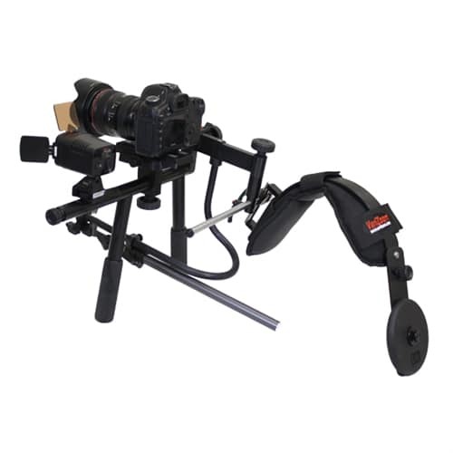 El VariZoom VZ-ZGRIG DSLR es un soporte de hombro avanzado y patentado con amortiguación de impactos, diseñado específicamente para la grabación de vídeo con cámaras réflex digitales. Gracias a su diseño único que compensa el centro de gravedad, permite una inclinación sencilla, un equilibrio excelente y una comodidad inigualable para cámaras de hasta 3,2 kg.