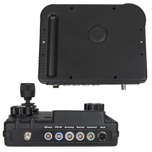 Consola de control con joystick de 3 ejes, botones de enfoque/zoom y teclado retroiluminado