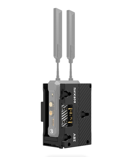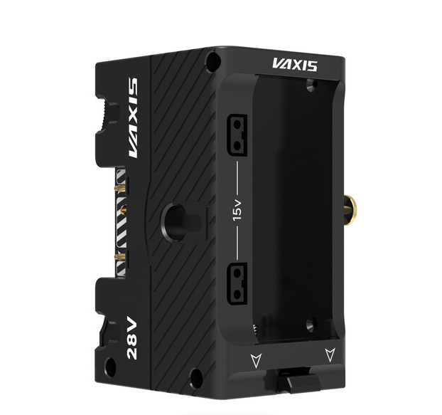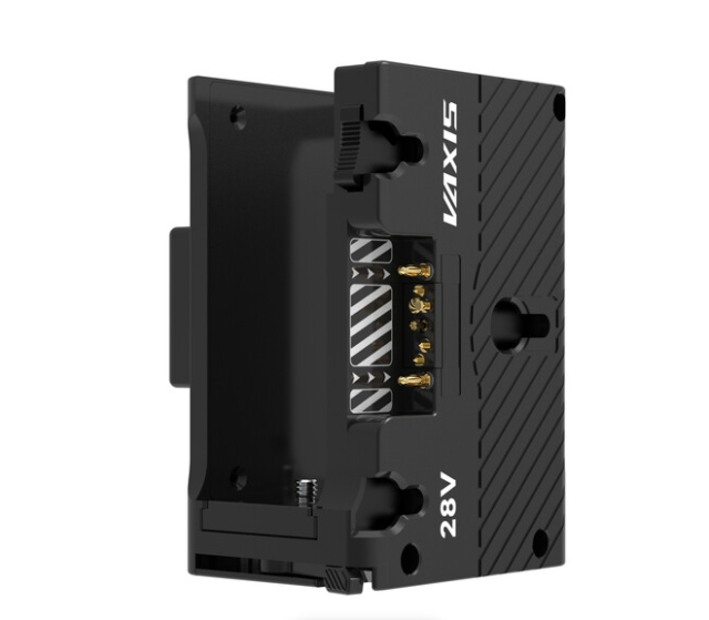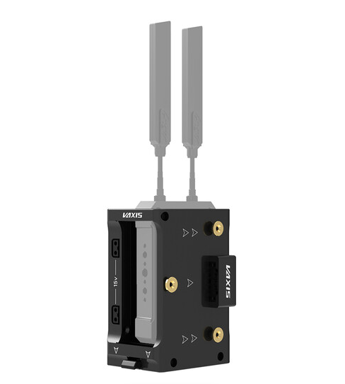 La base inalámbrica Vaxis VS23-TX-AB Dual-Voltage Wireless TX Cradle está equipada con dos puertos D-Tap compatibles con alimentaciones de 14,4 V y 28 V, una placa de fijación rápida compatible con los transmisores Vaxis, Teradek y otros, y opciones de fijación universales, incluidas las placas de batería Gold Mount, que proporcionan una solución segura y flexible de alimentación y fijación para sistemas inalámbricos de transmisión de vídeo.