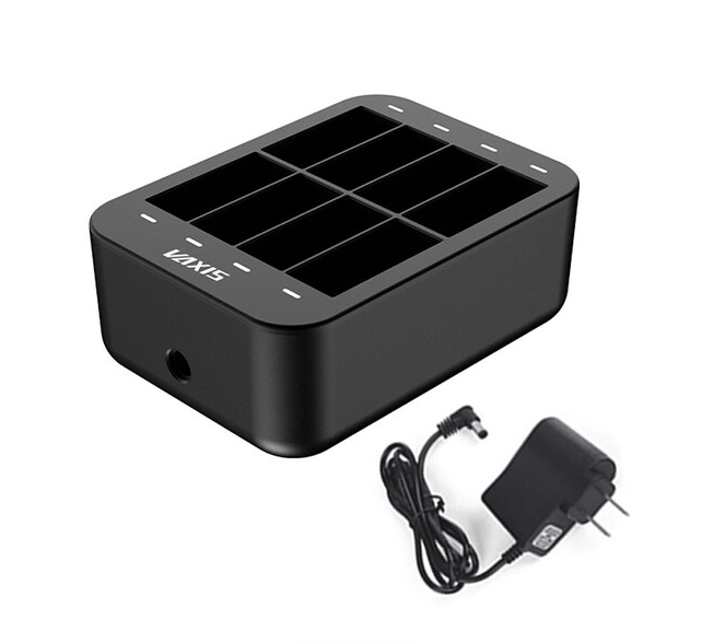 El cargador Vaxis para ocho baterías Litecomm recarga simultáneamente hasta ocho baterías Vaxis Litecomm 901 en tan solo 2,5 horas mediante el adaptador de corriente incluido, lo que lo hace ideal para flujos de trabajo de vídeo inalámbricos con grandes volúmenes de datos.