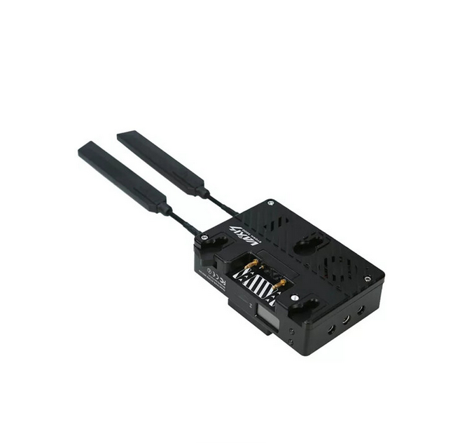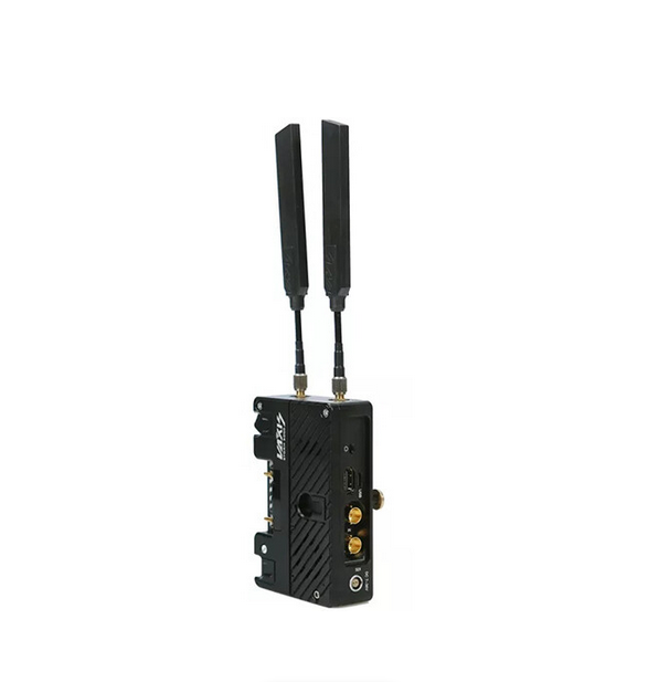 Se alimenta mediante dos placas de batería Gold Mount con función de paso, se monta directamente en cámaras equipadas con Gold Mount y alimenta tanto la cámara como el transmisor con una sola batería. Para fuentes de alimentación externas, hay disponible otra entrada de alimentación LEMO de 2 pines. Otras características profesionales incluyen una pantalla OLED brillante, una carcasa metálica resistente, refrigeración activa inteligente, paso de código de tiempo y metadatos, compatibilidad con la reproducción instantánea de ARRI ALEXA Mini y un punto de fijación de 1/4"-20.