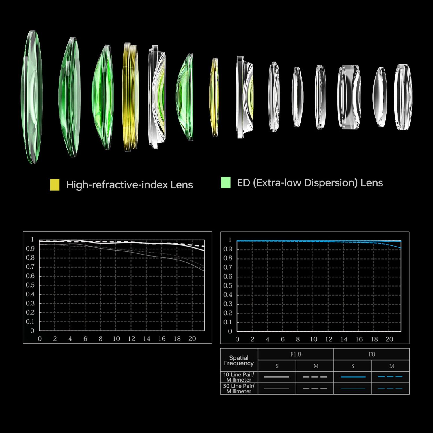 • Equipado con un diseño óptico de 14 elementos y 9 grupos para una calidad de imagen excepcional.