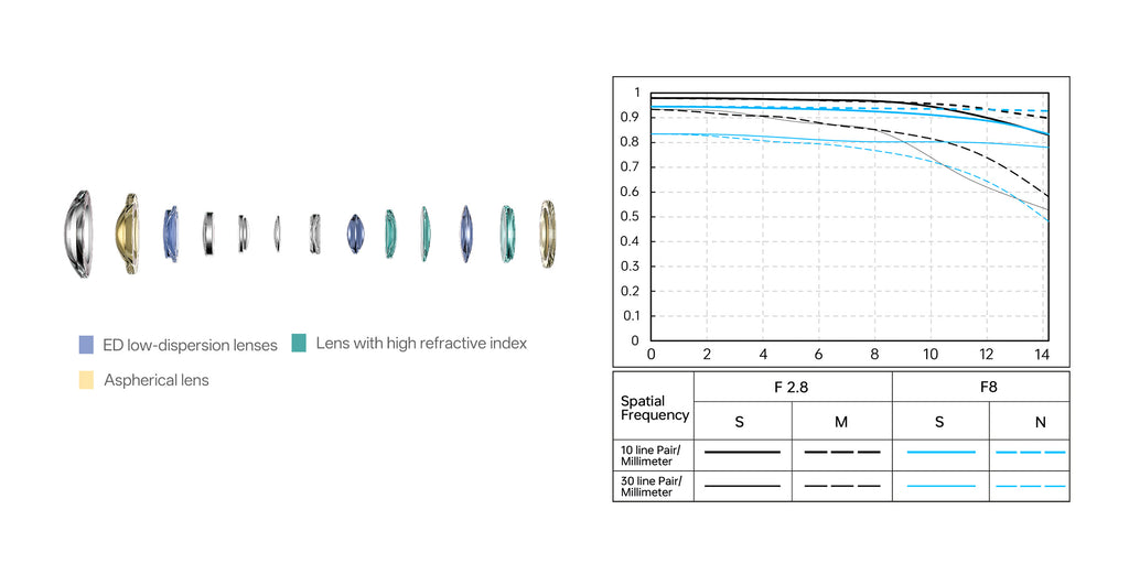 El diseño óptico, cuidadosamente fabricado con 13 elementos en 11 grupos, incluye 2 elementos asféricos, 3 ED y 3 HR para un control eficaz de la aberración cromática y la distorsión, al tiempo que proporciona una nitidez excepcional de borde a borde en imágenes ultra gran angulares.