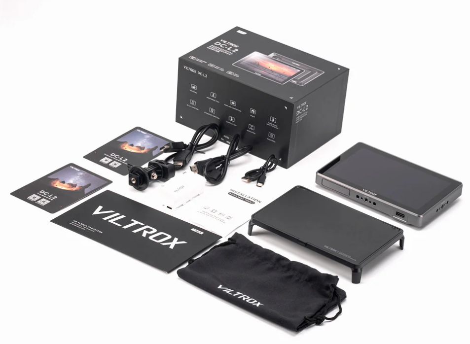 El DC-L2 incluye una placa de batería de la serie L con batería, un puerto USB para actualizaciones de firmware y carga de 3D LUT, y accesorios básicos como un parasol, un adaptador para montaje en zapata, cables HDMI y una protección de pantalla. Compacto, repleto de funciones y listo para la producción, el Viltrox DC-L2 es la herramienta de monitorización ideal tanto para grabaciones en estudio como sobre el terreno.