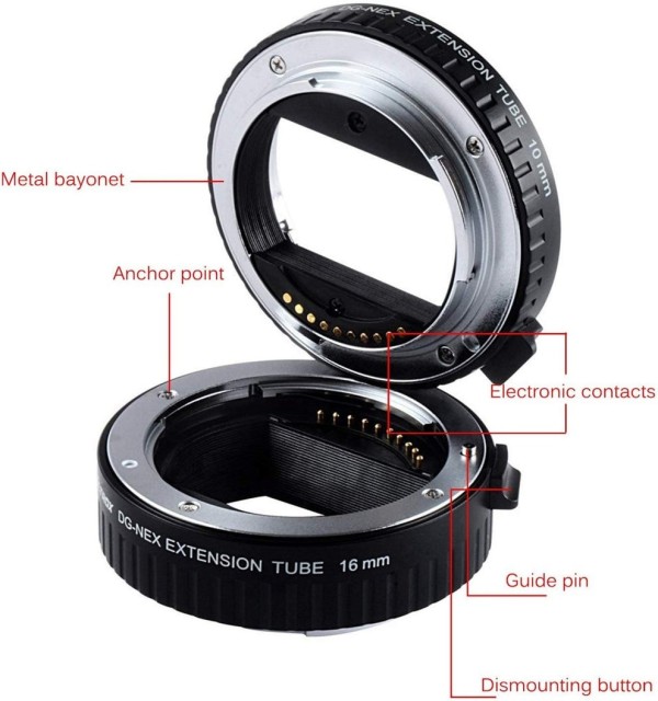 Este juego automático de tubos de extensión macro de alta calidad permite enfocar más de cerca los objetos ampliados en la fotografía macro. Convierte cualquier objetivo en un objetivo macro por una fracción del precio, conservando la calidad óptica original. Los tubos de extensión DG crean una distancia entre el objetivo y el plano del film, lo que permite enfocar más de cerca.