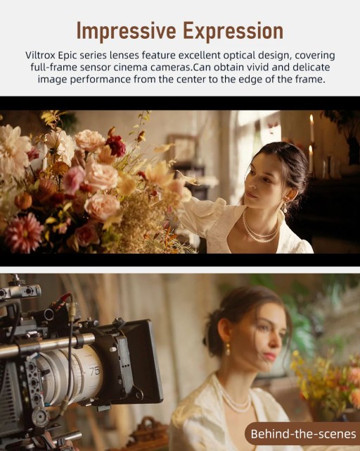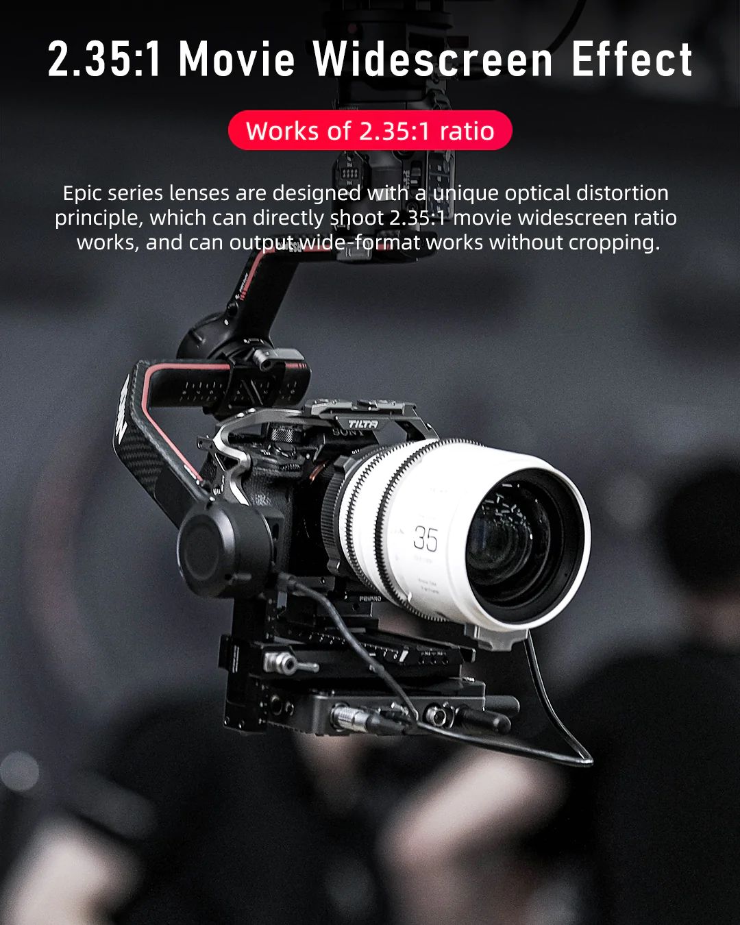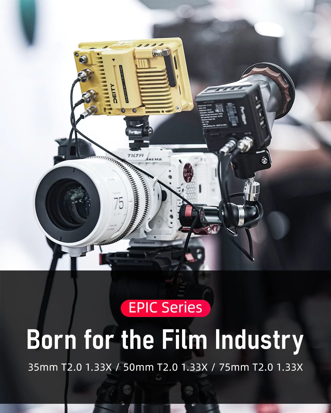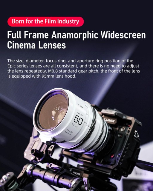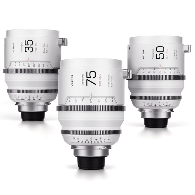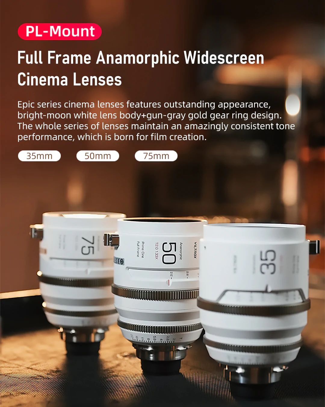 Los objetivos anamórficos Viltrox Epic Series 35/50/75 mm T2.0 1,33X están diseñados para cámaras de cine con montura PL y suponen la entrada oficial de Viltrox en la industria cinematográfica de alta gama. La serie Epic se caracteriza por un impresionante rendimiento óptico adecuado para el trabajo en gran angular con una relación de 2,35:1, una reproducción de colores retro y nítida, una relación de compresión constante de 1,33x, un rendimiento óptico consistente, respiración nula y anillos con paso de rosca M0,8. Juego de tres objetivos, 35 mm, 50 mm y 75 mm T2,0 con estuche de transporte.