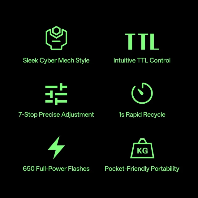 El Spark Z3 está equipado con un modo TTL que puede medir la luz en tiempo real a través del objetivo y calcular la potencia del flash para el disparo automático. El Z3 tiene una mayor duración de la batería, lo que permite hasta 650 disparos a plena potencia.