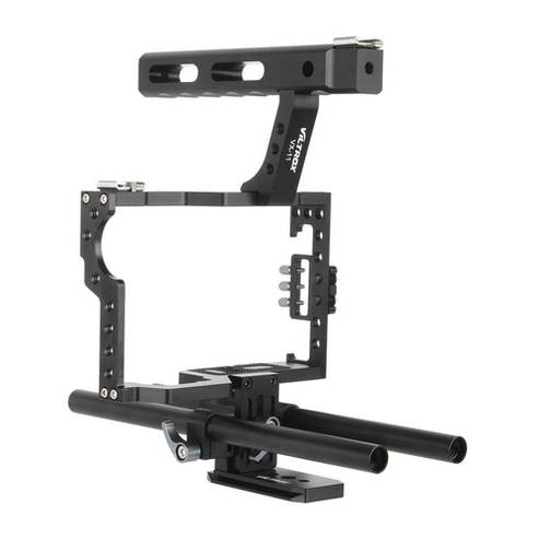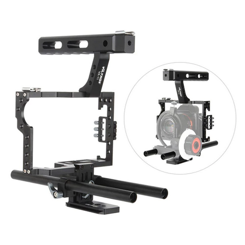 La jaula de vídeo de aleación de aluminio VX-11 es una buena opción para grabar con mayor precisión y facilidad. Cuenta con decenas de orificios estándar para tornillos de 1/4" y 3/8", así como con dos soportes de zapata, que te ayudarán a colocar fácilmente tus accesorios de vídeo. Da rienda suelta a tu creatividad.