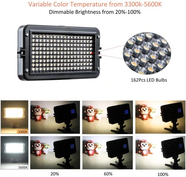 Funciones de regulación de intensidad y modos de color: Regulación de la intensidad (20-100 %) y temperatura de color variable (3300 K-5600 K) para dar más brillo a tus vídeos o fotografías. Los 4 filtros incluidos se pueden instalar fácilmente mediante un imán para conseguir efectos creativos con diferentes colores de luz.