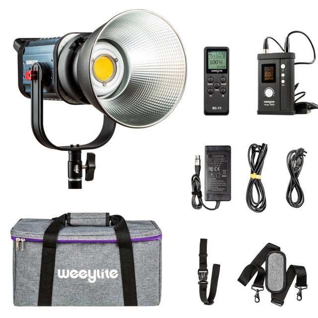 El reflector LED bicolor de estudio Weeylite Ninja 400 de 150 W utiliza la moderna tecnología LED COB para ofrecer un alto rendimiento lumínico y una buena reproducción cromática (≥95 RA). Ideal para fotografía de estudio, vídeo, etc. Ofrece una temperatura de color totalmente ajustable en un rango de 2500 K a 8500 K y una intensidad en un rango del 20 % al 100 % (máx. 12 750 lm, 16 700 lx/1 m). Además de DMX, este modelo permite el control remoto mediante Bluetooth y una aplicación móvil; la alimentación se realiza mediante una batería V-mount (no incluida) o una fuente de alimentación externa (incluida en el paquete). Dimensiones: 233 x 160 x 120 mm; peso: 1660 g.