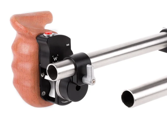 La abrazadera para barra de 19 mm con roseta ARRI permite fijar una empuñadura estándar ARRI a una barra de 19 mm. Es ideal para crear una configuración compacta con una de nuestras empuñaduras de madera para cámara, la empuñadura Rosette (cuero marrón) y la empuñadura Rosette (goma). También son compatibles las empuñaduras ARRI de otros fabricantes.