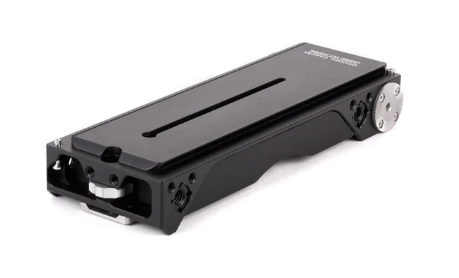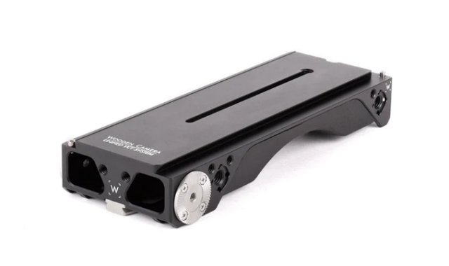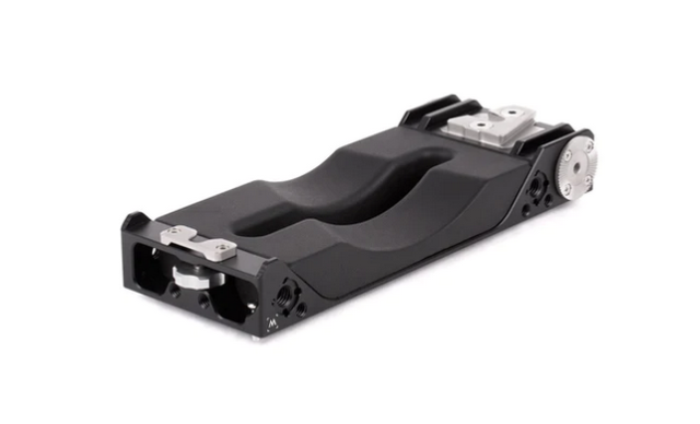 La placa de cuña Unified VCT es un accesorio estándar de Sony VCT-14 que se acopla a la parte inferior de todas las placas base Unified. Nuestra forma especial de cola de pájaro de ARRI, con una altura reducida, permite una instalación rápida y un equilibrio adecuado de cualquier equipo de cámara Unified cuando se lleva al hombro. El pasador de seguridad y los tornillos de bloqueo en los extremos evitan que se suelte accidentalmente. Las rosetas con rosca M6 estándar ARRI se encuentran a cada lado y se pueden combinar con nuestros soportes y brazos para rosetas para una configuración rápida y manual. También hay orificios con rosca 1/4-20 y soportes estándar para accesorios ARRI (orificio con rosca 3/8-16 con pasadores de posicionamiento adyacentes). En la parte trasera del plato de cuña hay un botón que, una vez instalado en la placa de trípode VCT-14, se puede apretar para evitar posibles oscilaciones.