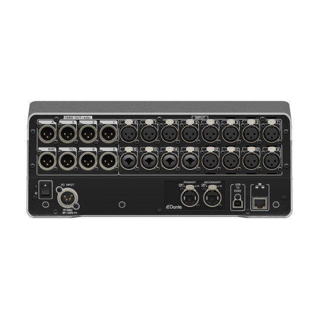 La DM3, la mesa de mezclas Yamaha compatible con Dante más compacta, ofrece un sonido de alta calidad a 96 kHz mediante 16 entradas analógicas y ocho salidas de baja latencia, y se adapta perfectamente al rack de E/S Tio1608-D para una configuración del sistema más sencilla y rápida.