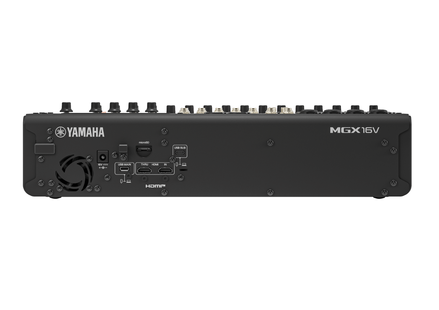 La Yamaha MGX16V es el buque insignia de la serie MGX, que combina una mesa de mezclas digital de gran capacidad con una interfaz HDMI integrada para la transmisión de audio y vídeo. Está diseñada para producciones profesionales en directo, retransmisiones en streaming y sistemas audiovisuales fijos, y ofrece una calidad de sonido de primera clase, procesamiento DSP avanzado y una integración fluida de audio y vídeo.