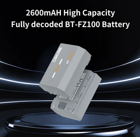 La BT-FZ100 es una batería de repuesto de alta capacidad de 2600 mAh (7,2 V) totalmente compatible con las cámaras Sony, que funciona exactamente igual que la NP-FZ100 original —sin ventanas emergentes, comunicación completa con la cámara y exactamente el mismo tamaño físico— y, además, ofrece compatibilidad con la carga rápida (carga completa en ~2,5 horas con los cargadores ZGCINE PS/PC) y una protección de seguridad premium de 8 capas.
