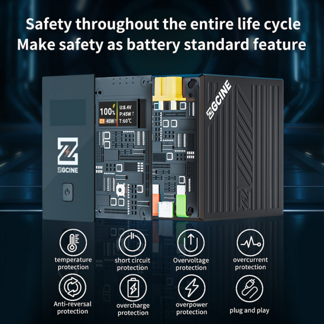 La batería ZGCINE BT-NPF970 de la serie L ofrece un alto rendimiento en un diseño resistente y compacto, con una capacidad de 9600 mAh (7,2 V/69,12 Wh) de batería de iones de litio, y admite carga rápida PD y descarga de hasta 36 W a través de USB-C. Está equipada con una salida D-TAP (8,4 V/3 A), una salida NPF (7,2 V/10 A) y una entrada NPF (8,4 V/6 A), y alimenta una amplia gama de equipos de cine y de retransmisión. La pantalla OLED integrada permite supervisar en tiempo real el porcentaje de carga de la batería, el voltaje (U), la potencia (P), la temperatura (T) y el estado de la interfaz C1. La pantalla se puede cambiar con un solo botón (está inactiva durante la carga). Está diseñada teniendo en cuenta la seguridad durante toda su vida útil e incluye protección contra sobrecalentamiento, cortocircuito, sobretensión, sobrecorriente, inversión de polaridad, sobrecarga y sobrecorriente. Está fabricado en PC+ABS, funciona de forma fiable en un rango de temperaturas de -10 °C a 45 °C y ofrece la función plug-and-play para una integración fluida en los flujos de trabajo profesionales.