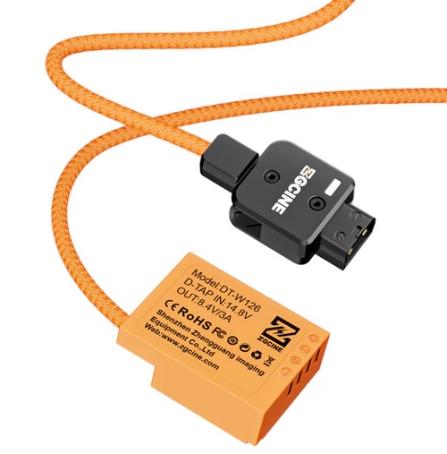 El cable ZGCINE D-Tap para la batería simulada NP-W126 proporciona alimentación continua a dispositivos como cámaras y monitores, y ofrece una solución de alimentación fiable con funciones de seguridad y un indicador de polaridad inversa.