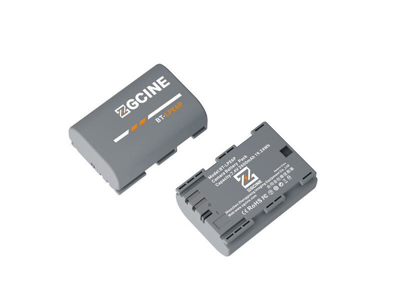 La batería ZGCINE LP-E6P para cámaras es una batería de alta capacidad de 7,2 V y 2600 mAh diseñada para determinadas cámaras Canon, cámaras Blackmagic Pocket Cinema y modelos Z CAM, y es compatible con diversos cargadores, empuñaduras y sistemas inalámbricos de control de objetivos.