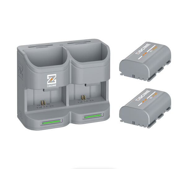 El kit de estuche de carga para viaje ZGCINE PC2-LPE6P incluye dos baterías LP-E6P (grises) de alta capacidad (2600 mAh) y un estuche de carga compacto que proporciona una fuente de energía fiable para las cámaras sin espejo de Canon (R5, R6, R7), cámaras Blackmagic Pocket Cinema (4K/6K), Z CAM E2 y accesorios como el Tilta PowerGrip y el SmallRig MagicFIZ, lo que lo convierte en una solución de alimentación portátil imprescindible para equipos profesionales de cine y fotografía.