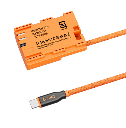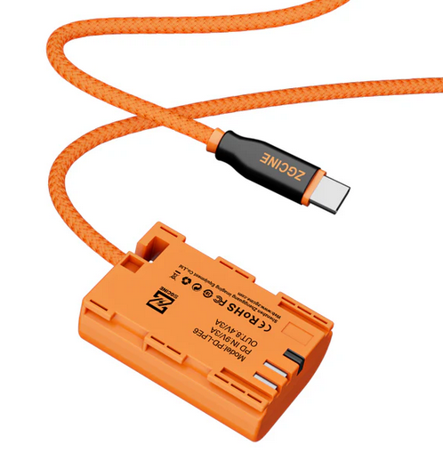 El cable ZGCINE USB-C con batería simulada LPE6 proporciona alimentación continua para cámaras y otros dispositivos, y cuenta con funciones de seguridad mejoradas y decodificación completa para un rendimiento estable.