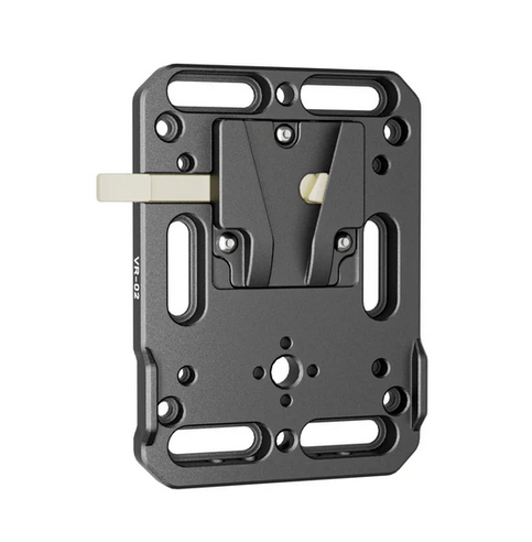 La placa de batería ZGCINE VR-02 V-Lock Mount es una solución fiable y versátil para montar baterías V-mount en tu equipo de cámara. Está diseñada con un soporte V-lock y una palanca de liberación rápida, y es compatible con la mayoría de las baterías V-mount (excepto las baterías PAGlink y Patona Premium BP-190WS). Esta placa es una solución de montaje pasiva, lo que significa que no contiene ningún componente electrónico y que, para alimentar su equipo, depende de las propias salidas de la batería. La placa incluye varios puntos de montaje, como espigas avellanadas de 1/4"-20", M3, M4, orificios roscados de 1/4"-20", orificios roscados M4 y un orificio roscado ARRI de 3/8"-16, por lo que es muy adaptable para fijar accesorios como pinzas de doble varilla o brazos mágicos. La estabilidad está garantizada por dos topes que evitan que la batería se tuerza durante el montaje. Esta placa está fabricada en aluminio resistente, está diseñada para soportar las duras condiciones del uso profesional y es compatible con cámaras como la Blackmagic URSA Mini. Tenga en cuenta que no se incluye ninguna pieza V-Lock (macho) y que la placa no dispone de puertos de alimentación.