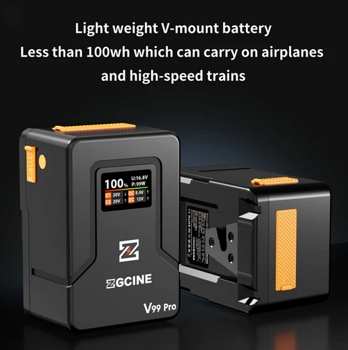 La batería ZGCINE ZG-V99Pro V-Mount es una versión mejorada de la batería V99, con carga rápida PD de 100 W, más puertos de salida y una pantalla inteligente en tiempo real, lo que la convierte en una solución de alimentación potente y versátil para cineastas y fotógrafos.
