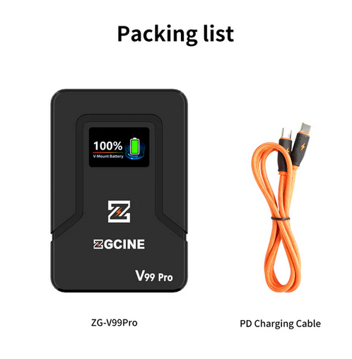 La batería ZGCINE ZG-V99Pro V-Mount es una potente batería V-mount mejorada con carga rápida PD de 100 W, una pantalla inteligente de 1,1 pulgadas para el seguimiento en tiempo real y compatibilidad con diversos dispositivos, lo que la hace ideal para fotógrafos y videógrafos.