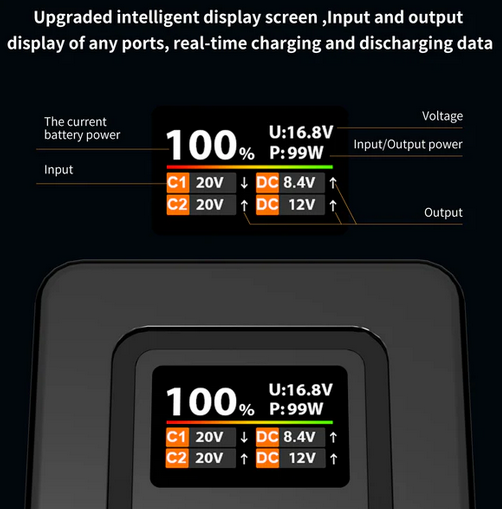 La batería ZGCINE ZG-V99Pro V-Mount está diseñada para profesionales que necesitan una fuente de alimentación eficaz y fiable para sus dispositivos. Esta versión mejorada de la batería V99 cuenta con carga rápida PD de 100 W, lo que permite cargarla por completo en tan solo 1,5 horas con un cargador de 100 W. La pantalla de 1,1 pulgadas muestra información importante, como el voltaje, la potencia total y la temperatura, lo que permite supervisar la batería y los dispositivos en tiempo real.