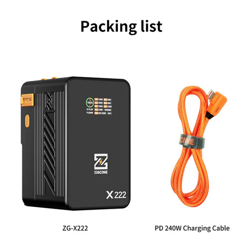 Batería ZG-X222 con montura en V, 222 Wh, entrada/salida PD 3.1 de 140 W, con doble puerto USB-C, 3-D-TAP, doble puerto CC y pantalla digital de 1,4 pulgadas (naranja)