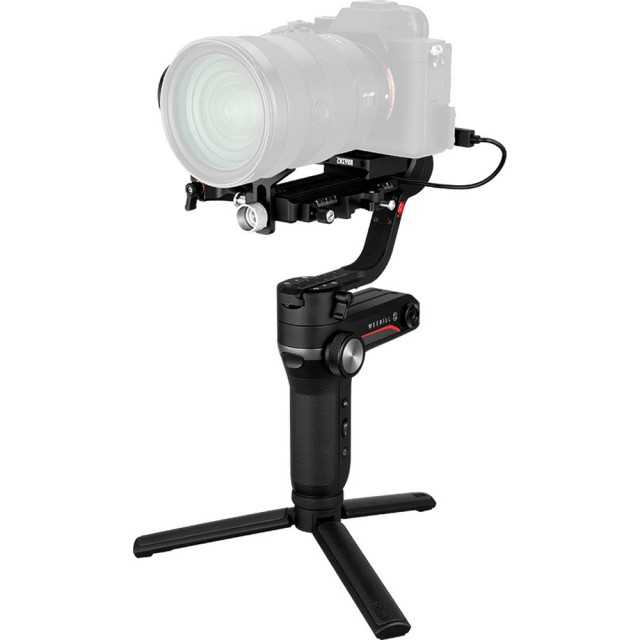 El estabilizador de cámara Zhiyun-Tech Weebill-S ofrece, en comparación con el modelo original Weebill Lab, un diseño más compacto, motores mejorados y un algoritmo de estabilización perfeccionado. ¡Gracias a ello, el Weebill-S ofrece un par motor un 300 % mayor y una respuesta un 50 % mejor! Esto facilita la estabilización de configuraciones de cámara más pesadas, como la Canon 5D Mark IV + 24-70 mm o la LUMIX S1 + 24-105 mm (la lista completa de cámaras compatibles se encuentra aquí; el fabricante no indica la carga máxima permitida; el peso del estabilizador es de 926 g).