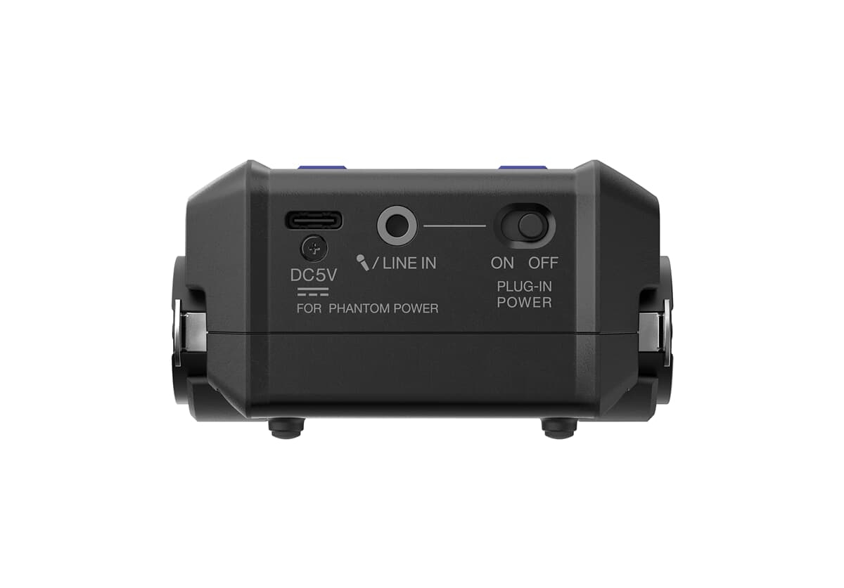 • Alimentación fantasma: El EXH-6e puede proporcionar alimentación fantasma a las 2 entradas combinadas XLR/TRS. Para alimentar micrófonos de condensador, conecta el puerto USB-C de la cápsula a una toma de corriente alterna o a una batería USB. La alimentación por toma de corriente también está disponible para los micrófonos de solapa conectados a la entrada de 3,5 mm.