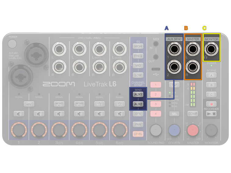 A. SALIDAS AUXILIARES | Envía tus propias mezclas a monitores, efectos o dispositivos externos.
