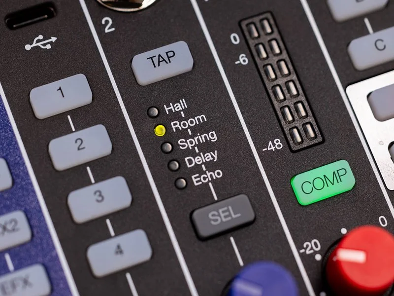 Mejora tu mezcla con los efectos integrados, que incluyen 3 reverberaciones, retardo y eco.